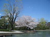 葛西橋通りと船堀街道との交点付近にあるこの公園は、地元篤志家の寄付により始まった区営の公園である。「築山池泉回遊式」日本庭園(平成庭園)や茶室「源心庵」があり、遊具広場や自然動物園、つり池などもあって老若幼揃って楽しめる。枝垂櫻 の大木は葉桜になっていたが、ヤエザクラが満開で楽しめた。