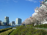 50本ほど植えられた桜が大きく成長し、永代橋やビル群を背景に中々見事な景観を形成していた。