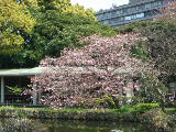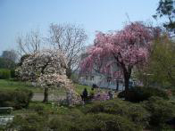 4月27日は反対側の公園に行く。憲政記念館は生憎休み、この記念館の裏庭には八重桜が2本満開、左側が「静香」右側が「普賢象」。又、大きな枝垂桜1本が葉桜となって残っていた。かっての桜祭りのイベントに使われていた桜の様だ。この付近には「関山」「福禄寿」など八重桜がまだ沢山残っており、眼を楽しませてくれた。