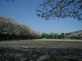 案内所で公園の沿革を知り、大きな歩道橋を渡り軟式野球場の廻りを一周する。昨夜来の雨で桜の落ち葉がしっとりと濡れていた。