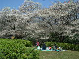 駒沢通りを地下道で抜け、陸上競技場方面に向かう。あのオリンピックタワーの先にある自由広場では沢山の花見客が弁当を拡げていた。