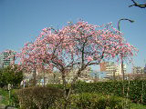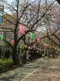 南砂2丁目にある「公社南砂住宅」を囲むように伸びる南砂緑道公園。南砂2丁目町会・桜まつりが開かれていた。櫻は9分咲き位、途中にシダレザクラが一本満開だった。