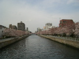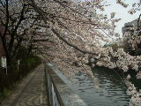 都営新宿線・菊川駅より徒歩約2分で大横川護岸に着く。両岸一杯にソメイヨシノが花開く。今日が最高、圧巻である。土曜日でもあり、沢山の人々で賑わっていた。