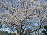 長い参道を入り、本堂左手に回り込むと大きな桜が数本あり、満開だった。
